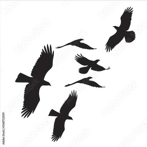 Fototapeta premium Flying Popular birds silhouette isolated on white background.