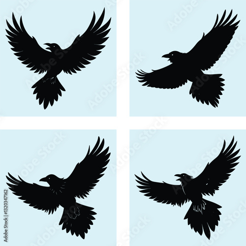 Obraz premium Flying Raven Silhouette vector illustration