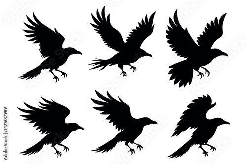 Fototapeta premium "Flying Raven Silhouettes Vector Pack Black Crow Clipart Bundle"
