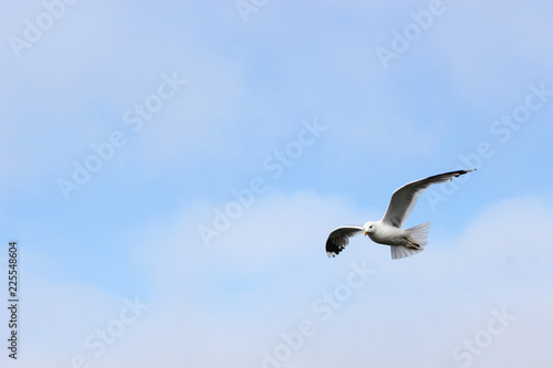 © sommart, Obraz premium Flying seagull in the blue sky.