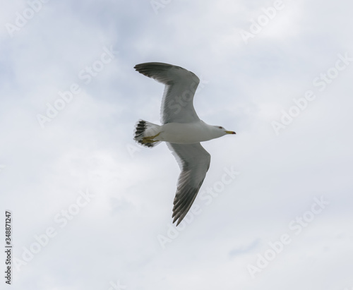 © Vladimir Arndt, Obraz premium Flying seagull over blue sky.