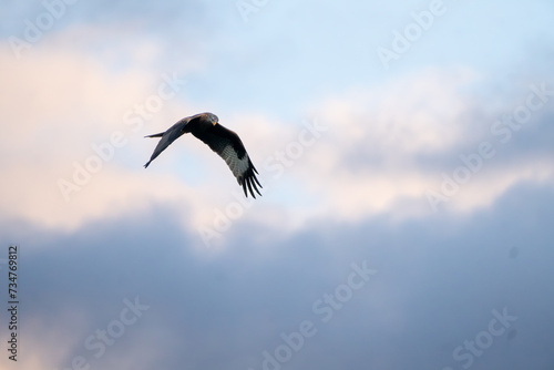 Obraz premium flying shot of a red kite in the sky