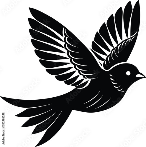 Naklejka premium Flying Songbirds silhouette isolated on white background, Bird silhouette
