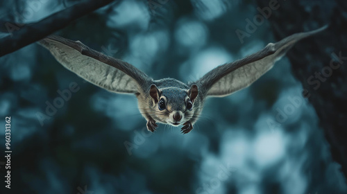 © XtravaganT, Fototapeta premium Flying Squirrel in Motion: A Glimpse of Nature's Grace