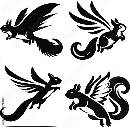 © mohammedShorab, Fototapeta premium Flying Squirrel Silhouette Vector | Gliding Rodent Clipart | Black and White Squirrel Illustration | Wildlife Icon
