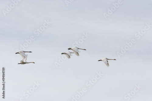 © Feng Yu, Fototapeta premium Flying Trumpeter Swan