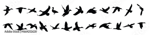 © khadi, Obraz premium Flying wading ducks silhouette illustration set