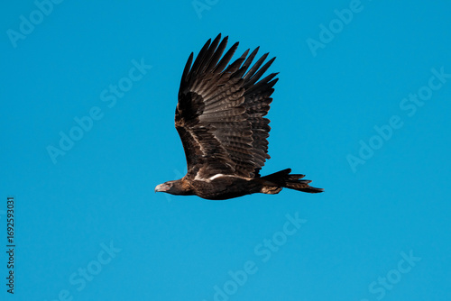 Obraz premium flying wedgetail eagle in a nest in a gum tree in australia