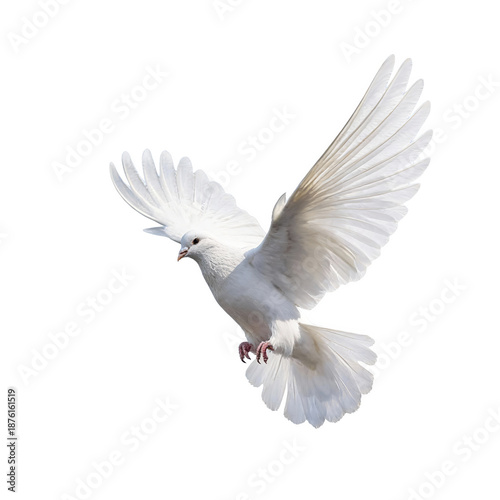 Obraz premium Flying White Dove in Full Wing Span