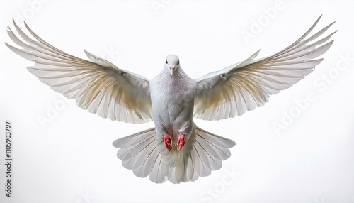 Obraz premium Flying white doveon isolated white backgroud