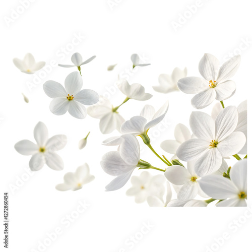© Rana, Obraz premium Flying white flowers isolated on transparent background