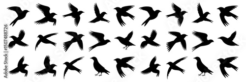 Naklejka premium Flying wild animal and bird silhouettes, a vector set of nature's icons with...