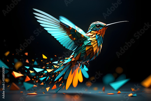 © dotmagic, Fototapeta premium Flying wild hummingbirds and tropical birds on branches with colorful flower illustrations