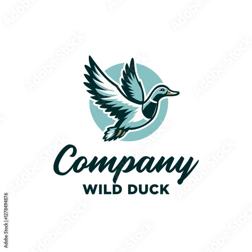 Obraz premium Flying wild mallard duck logo design for outdoor hunter symbol
