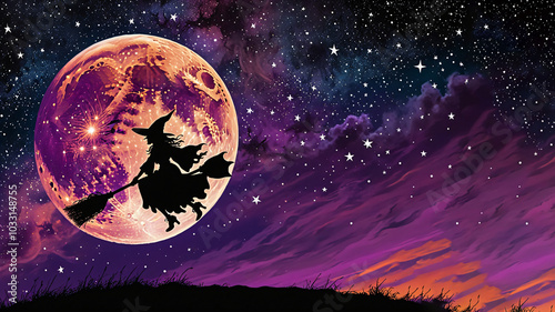 Naklejka premium Flying Witch Silhouette