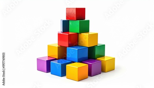 Obraz premium FlyPro_Firefly presents an array of brightly colored building blocks stacked...