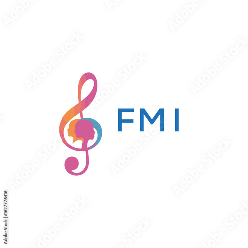 © MDENAMUL, Naklejka premium FMI “Colorful music logo with human faces and treble clef design” FMI Later Logo, “Abstract music school logo with people and melody icon”