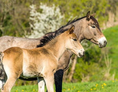 © Bagas, Fototapeta premium Foals in a Spring Meadow