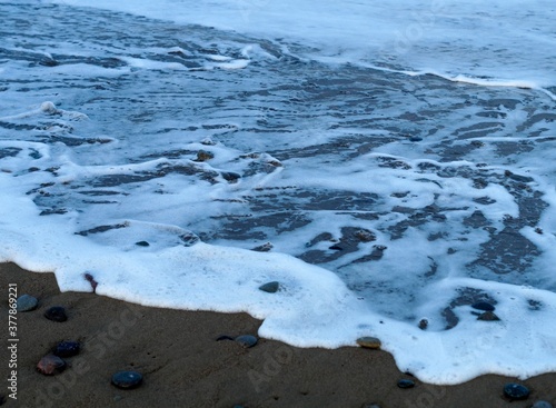 Fototapeta premium foam wave on the sea sand of the beach