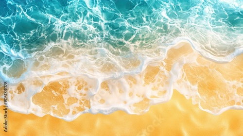 © Penatic Studio, Naklejka premium Foamy Ocean Waves Crashing on Golden Sand