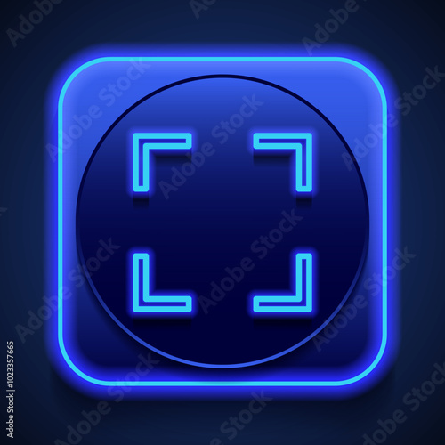 Obraz premium Focus, full screen simple icon vector. Flat design. Blue neon style on button. With shadow