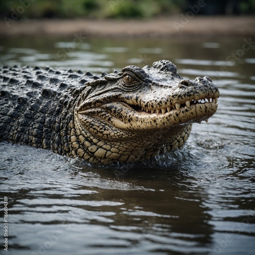 © Asad, Obraz premium Focus on a crocodile emerging from the water.