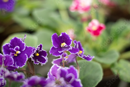 © Ken, Obraz premium Focus on beautiful purple violet in flower garden