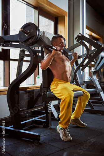 © Svitlana, Naklejka premium Focused athletic man working out on gym machine