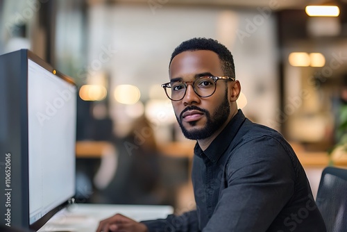 Fototapeta premium Focused Business Professional at Desk. Concept of Productivity, Work, and...