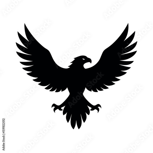 © khan, Obraz premium Focused eagle in flight with outstretched wings Line Art Vector illustration