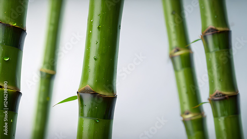 © Visual Space, Obraz premium Focused image of green bamboo stalks surrounded by fresh, vibrant leaves in natural light capturing the serene and tranquil essence of nature, emphasizing ecological beauty and rejuvenation