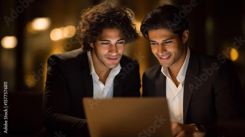 © Nataliya, Fototapeta premium Focused Indian Partners Discussing Startup Strategy on Laptop