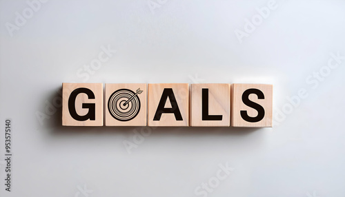 Obraz premium Focused on achievement, this image shows wooden blocks spelling 'GOALS'...