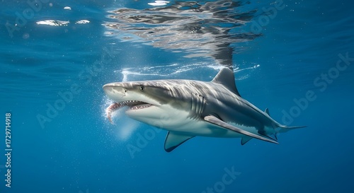Fototapeta premium Focused Shark Underwater Hunting.