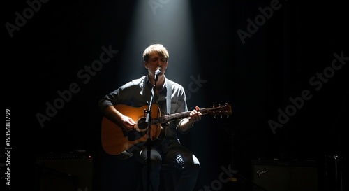 Fototapeta premium Focused Spotlight on a Musician Playing Acoustic Guitar