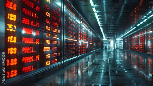 Fototapeta premium Focused view of an empty stock ticker display, dark and desolate, 3D...
