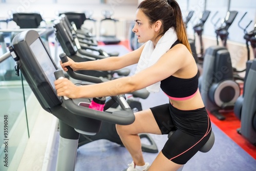 © WavebreakmediaMicro, Fototapeta premium Focused woman using the exercise bike