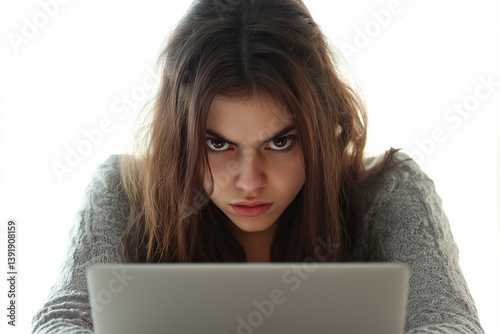 © damar yana, Naklejka premium Focused Woman Working on Laptop