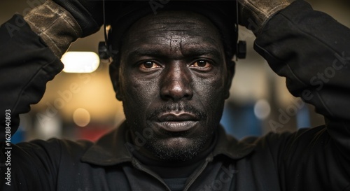 © pisang, Obraz premium Focused worker in dark clothing
