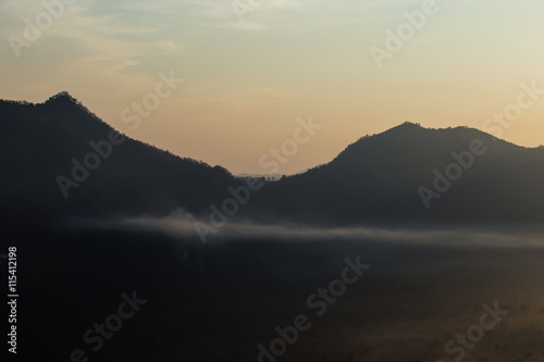 Obraz premium fog and cloud mountain valley sunrise landscape