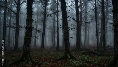 Fototapeta premium Fog and shadows in a scary forest.