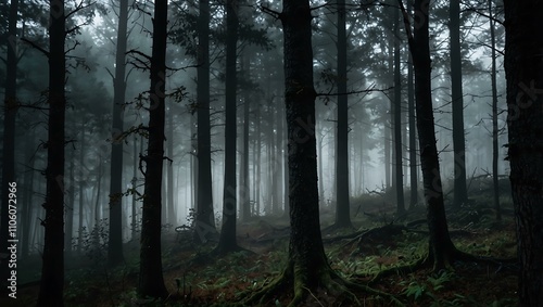 Fototapeta premium Fog and shadows in a scary forest.