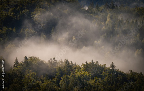 © Daniel Vincek, Fototapeta premium Fog cover the forest.