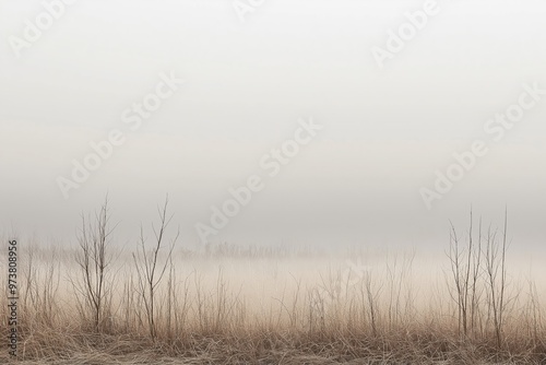 © EdvvinStudios, Obraz premium Fog covering the countryside with bare trees and dry grass