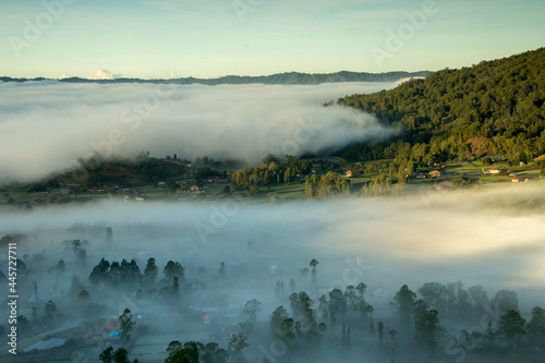 © Andri, Fototapeta premium fog covers a village in kintamani bali