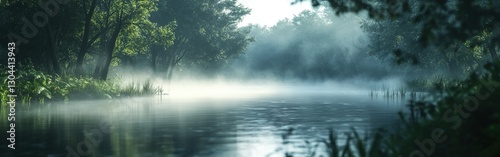 © BrandwayArt, Fototapeta premium Fog gently rises over a tranquil river in the early morning