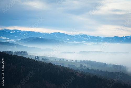 Obraz premium Fog in autumnal forest in Austria
