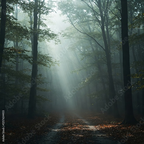Obraz premium Fog in nature, mystical forest and beautiful scenery