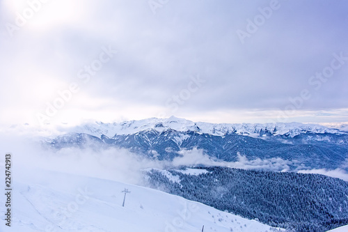 © Sergey Oleynik , Fototapeta premium Fog in the Caucasus mountains.