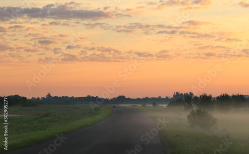 © Venera, Fototapeta premium fog in the field at sunrise